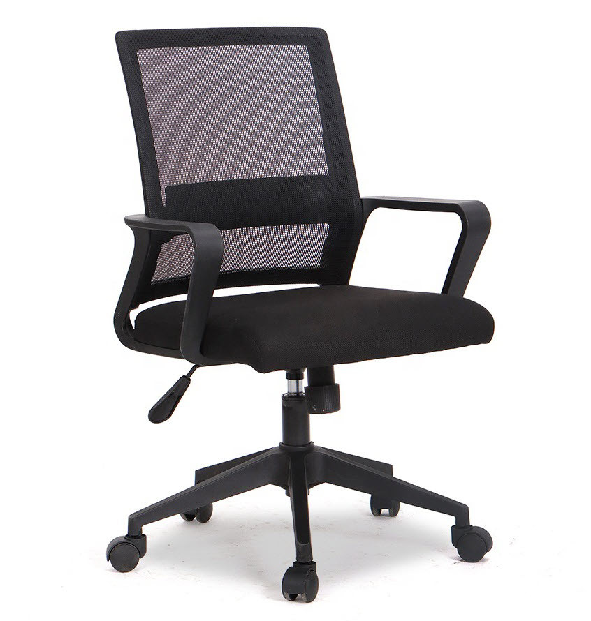 Крісло оснащене високою спинкою із чорної сітки mesh, яка забезпечує гарну вентиляцію та підтримку спини. Сидіння виконане з м'якої чорної акрилової тканини, що додає комфорту та естетичної привабливості.